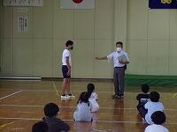 体育館に移動後は、島浦駐在所の方より、不審者対応時の合い言葉「い・か・の・お・す・し」などのお話がありました。また、校長先生からは、しっかりあいさつをして相手の反応を見ることや不審者との間合いについてのお話がありました。