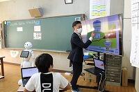 10月26日(火)の3校時、5・6年生は、AIロボット ペッパー君を活用した地球温暖化に関する授業を行いました。