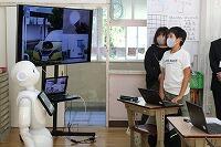 5・6年生はプログラミング学習で、昔話のあらすじをペアで話合いながら、ペッパーにプログラムしました。プログラムどおり、ペッパーが発表していました。