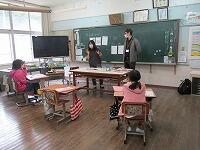 3・4年生は算数で、3年生が「三角形」、4年生が「分数」についての学習でした。複式の授業でも、子どもたちがしっかり学習していました。
