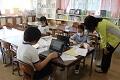 5・6年生は、修学旅行で学んだことや感想などをタブレットPCを使ってまとめていました。