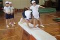 1年生が、跳び箱を使った運動遊びを行いました。跳び箱に跳び乗りったり跳び降りたり、体を手で支えてまたぎ乗り降りをしたり、アイデアいっぱいに工夫しながら運動遊びを行いました。