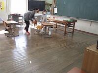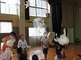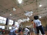 3・4年生は、「ふんわりフワフワ」という学習でビニールなどの軽い素材を使って、風の力を利用して動くおもちゃ作りをしました。できあがった作品は、送風機を使って体育館で飛ばしてみました。天井近くまでとんでいく作品もあり、とても盛り上がっていました。