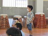 まず、2年生代表児童による作文発表でした。1学期に得意になったボール投げのこと、学習で町探検に行ったこと、ミニトマトを育てたことの3つを挙げていました。また、これからもコロナウィルスに負けないように、手洗いうがいをがんばりたいと話してくれました。最後まで元気よく、大きな声で発表していました。