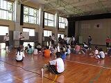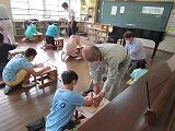 2校時に、小中学生合同で地域の伝統芸能である「うちわ踊り」の練習を行いました。地域の方をお招きし、踊り方について教えていただきました。