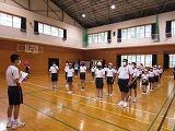 2校時に、小中合同練習を行いました。残念ながら雨のため、体育館での練習となりました。開会式、閉会式での動きや流れの確認を中心に練習を行いました。