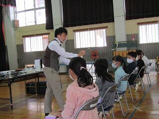 10月7日(水)に、UMKの気象予報士、酒井晋一郎 様を講師にお招きして、3年生から6年生を対象に、防災出前授業「空の教室」を行いました。