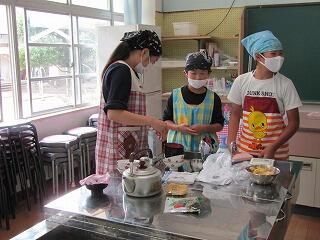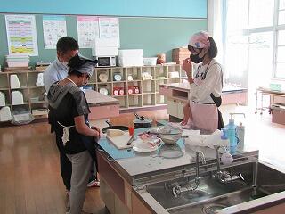 16日(金)の午後、5・6年生は調理実習を行いました。調理実習は、栄養教諭の先生にも入っていただき、衛生面の指導や感染症対策を徹底しながら行いました。