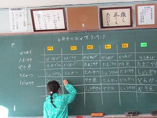3・4年生は、根拠を話す活動でした。まず、教師が好きなお弁当のおかず5品目について板書します。そして、子どもたちはその中のものを、自分が好きな順に板書していきます。書き終わった後、なぜそのような順番になったのか、その根拠について述べ合っていました。自分の考えだけではなく、一般的な考えなどを交えて発表を行っていました。