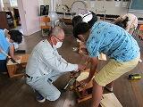 線に沿って切っていくことは大変難しかったようですが、講師の方の細かな指導を仰ぎながら、少しずつ子どもたちも慣れていきました。釘打ちも上手にできていました。最後は、やすりをかけてきれいに仕上げました。出来上がった作品を見て、子どもたちは非常に満足した様子でした。本立ては、この日のうちに家に持って帰りました。家でご利用ください。