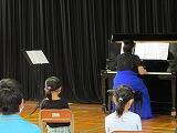 10月22日(木)に、鑑賞教室が行われました。今回は、ピアニストの野﨑さやか 様をお招きして、生のピアノ演奏を聴きました。ベートーベンやモーツァルト、シューベルト、サンサースといったクラシック曲や、子どもたちにもなじみ深いスタジオジブリの曲やゲーム音楽など幅広い音楽を披露していただきました。