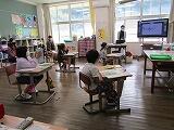 2校時は、授業参観。全ての学級で算数の授業でした。1年生は「ひきざん」、2年生は「かけ算(7の段)」、3年生は、「式と計算」、4年生は「図を使って考えよう」、5年生は「面積と比例」、6年生は「比例の式とグラフ」の学習でした。各学級とも、教材の準備やデジタル機器の活用など工夫を凝らしていました。