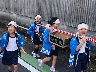 3~6年生10人で交代しながら神輿をかつぎました。