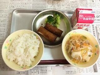 5月28日(金)の給食 投稿日時 : 2021/06/01 学校管理者 カテゴリ:今日の給食 白ご飯 牛乳 春巻き ゆでブロッコリー ワンタンスープ子ども達も大好きな春巻きでした。上手にはしを使って食べていました。