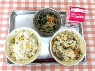 6月2日(水)の給食 投稿日時 : 2021/06/04 学校管理者 カテゴリ:今日の給食 季節の彩りご飯 牛乳 炒り豆腐 おかか和え今日は青豆とコーンの混ぜご飯でした。ふわふわの炒り豆腐、島野浦のあげみと煮干しのだしが効いていて、美味しくいただきました。