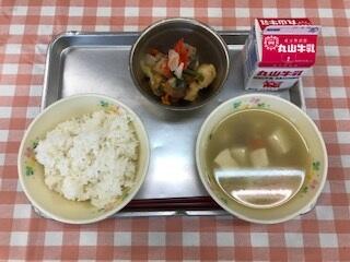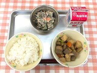 6月28日(月)の給食 投稿日時 : 2021/06/29 学校管理者 カテゴリ:今日の給食 白ご飯 牛乳 みやざき地頭鶏のレモン和え 添え野菜 呉汁今日はみやざき地頭鶏を使用しました。ブロイラー(若鶏)との違いを放送で話しました。今日もちゃんと聞いてくれていたようです。有り難くおいしくいただきました。