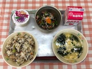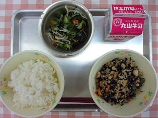 6月23日(水)の給食 投稿日時 : 2021/06/25 学校管理者 カテゴリ:今日の給食 ひじきご飯 牛乳 かきたま汁 土佐酢和え セレクトゼリー今日も和食でした。島小の子どもたちは今日もたくさん食べてくれました。ひじきご飯には島野浦のあげみなどたくさんの具が入っています。