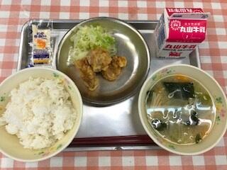 6月14日(月)の給食 投稿日時 : 2021/06/15 学校管理者 カテゴリ:今日の給食 麦ご飯 牛乳 県産養殖カンパチの唐揚げ ゆでキャベツ 千切大根汁今日は、宮崎県で養殖されているカンパチを提供することが出来ました。国と県が協力した取り組みや養殖業をされている方々のおかげです。ひむか地産地消の日にちなんだ献立で、大変美味しくいただきました。ありがとうございました。
