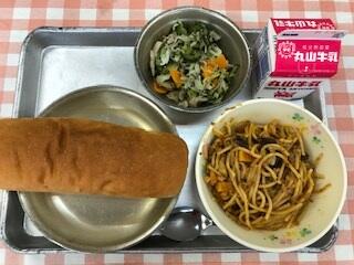 7月6日(火)の給食 投稿日時 : 2021/07/07 学校管理者 カテゴリ:今日の給食 減量コッペパン 牛乳 ミートソーススパゲティ じゃこの洋風サラダ今日は、宮崎県産のなすを使用したスパゲティでした。