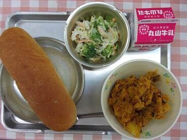 6月8日 投稿日時 : 2021/06/09 学校管理者 カテゴリ:今日の給食 コッペパン 牛乳 かぼちゃのミート―ソース煮 ごまじゃこサラダ今日は、食感や食べる時の音が楽しいごまじゃこサラダでした。現在、歯と口の健康週間中です。昨日の千切大根や今日のカリカリのじゃこなど、食感が良いものは自然と噛む回数も増えるので、是非お家でも食感を大切にし、お子さんと話題にしてみましょう。