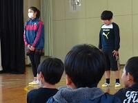 次に、3学期の目標を6年の佐藤くんが発表してくれました。そして、校歌を全員で斉唱しました。その後、学習、生活、保健の担当の先生から3学期のスタートに向けて心の準備(やる気スイッチ)、体調の管理等について話がありました。やる気スイッチを入れて頑張っていきましょう。