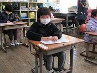 2月18日(木)は、島浦保育所年長児を招いての体験入学でした。4月からの小学校生活に向け、慣れるために設定されています。今年度は、3人の年長児さんが、3校時からそうじの時間まで、1年生と一緒に活動しました。始めに自己紹介をしました。まず、1年生がお手本を見せた後、年長児さんも行いました。とてもしっかり発表できました。その後は、学校内を探検しました。1年生も年長児さんのお世話を一生懸命しており、1年間の成長を感じました。