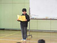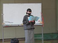 2校時に終業式を行いました。まず、児童代表作文発表でした。4年生代表児童が2学期がんばったこと、3学期にがんばりたいことについて元気よく発表してくれました。