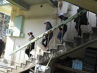 まず、水産加工場の見学を行いました。冷凍庫の中、乾燥させる倉庫の中に入る体験をさせていただきました。また、乾燥してくっついている魚を外す作業も体験できました。