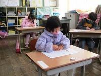 2月18日(木)は、島浦保育所年長児を招いての体験入学でした。4月からの小学校生活に向け、慣れるために設定されています。今年度は、3人の年長児さんが、3校時からそうじの時間まで、1年生と一緒に活動しました。始めに自己紹介をしました。まず、1年生がお手本を見せた後、年長児さんも行いました。とてもしっかり発表できました。その後は、学校内を探検しました。1年生も年長児さんのお世話を一生懸命しており、1年間の成長を感じました。