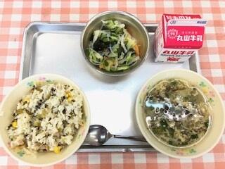 5月7日(金)の給食 投稿日時 : 2021/05/07 学校管理者 カテゴリ:今日の給食 えんどうご飯 牛乳 若竹汁 ひじきの和風マヨネーズ和え 柏餅今日は宮崎県産のうすいえんどうでえんどうご飯でした♪かしわ餅の、柏の葉のにおいに反応する子どもが多くいました。この香りが良いんだよ~と伝えたところでした。子ども達にとっての貴重な食経験の1つになれば幸いです。