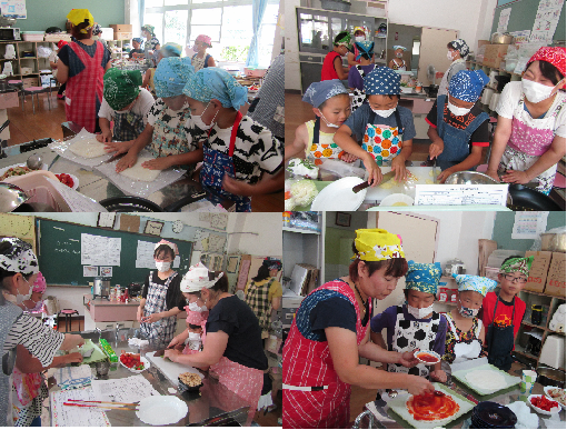 親子料理教室を行いました!! 投稿日時 : 2017/07/24 学校管理者 親子料理教室を家庭科室で行いました。〇 カラフルごはんピザ〇 コンソメスープ〇 フルーツポンピース の3品を作りました。包丁で具材を切るのも上手にできていました。みんな一生懸命作っていたので、どの班もおいしそうな料理ができあがっていました。具材を変えるだけでオリジナルピザができるので、お家でも挑戦していただけたらありがたいです。暑い中、たくさんのご参加ありがとうございました!