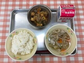 5月24日(月)の給食 投稿日時 : 2021/06/01 学校管理者 カテゴリ:今日の給食 白ご飯 牛乳 豚肉と厚揚げの味噌炒め 根菜汁具だくさんの根菜汁でした♪かみごたえのある食材をご家庭でも積極的に食べてみるとよいですね。