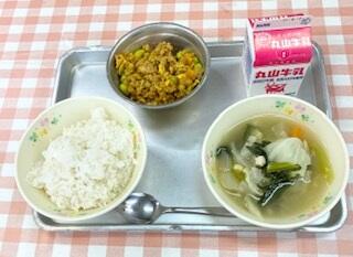 5月14日(金)の給食 投稿日時 : 2021/05/14 学校管理者 カテゴリ:今日の給食 麦ご飯 牛乳 豚肉とキャベツのピリ辛炒め わかめスープ申し訳ありません。今日は写真を撮りそびれました。今日も野菜たっぷりでした。ご家庭でも一食100gは野菜を食べるようにしましょう♪