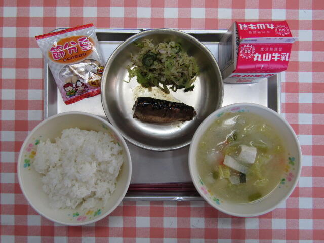 1月23日 投稿日時 : 2017/01/23 学校管理者 今日の給食は「麦ごはん 牛乳 みそけんちん汁 鮭塩焼き かりかり和え 味付けのり」です。 1月24日は給食記念日です。学校給食は、明治22年に山形県のある小学校から始まりましたが、戦争中は中止されていました。そして、戦争が終わり、昭和21年12月24日、アメリカから送られてきた小麦粉や脱脂粉乳を使った給食が再開されましたが、学校が冬休みに入るため、1ヶ月後の1月24日が給食記念日となりました。今日は給食の始まりや、給食ができあがるまでに多くのひとの働きがあること、食べ物に対する感謝の気持ちなどを考えながら給食を食べてほしいと思います。