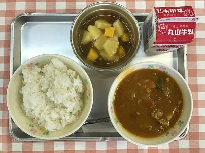 今日は、ごはん、牛乳、夏野菜カレー、フルーツポンチでした。