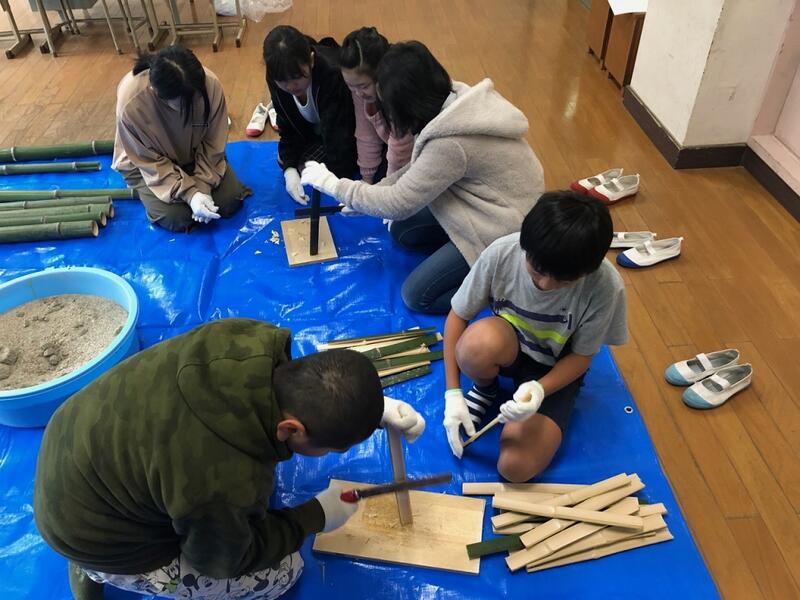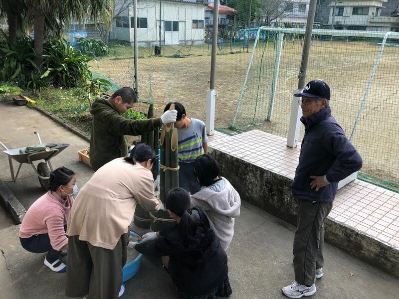 5・6年生の門松作り 投稿日時 : 2019/12/16 学校管理者 今日の1~3校時、地域の方2名をお招きして、5・6年生が門松作りに挑戦! 6年生は昨年も作っているので、手慣れた(?)ようにも見えました。鉈を上手に使い・・・、竹を並べて・・・、砂を入れ・・・、 化粧砂を入れ・・・、南天、松など飾りを付けて・・・、立派な門松ができあがりました!これで島野浦小学校も、正月を迎える準備ができました(^ ^)お二人の講師の方、ありがとうございました!! Tweet