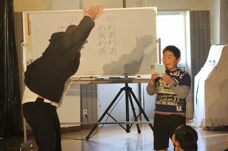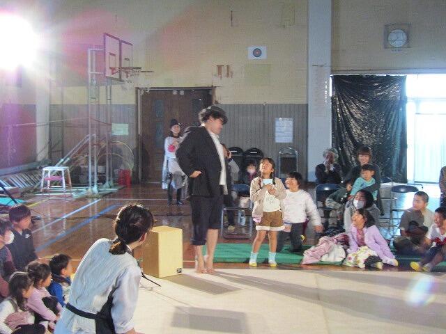 劇団来る! 投稿日時 : 2019/12/18 学校管理者 今日の4時間目に県立芸術劇場の演劇事業による鑑賞教室が実施されました。演劇は、宮沢賢治原作「どんぐりと山猫」。体育館中央がステージになり、マットで囲んでの観劇でした。 役者さんの豊かな表情や息づかいなどが目の前で見られ、また、8名の児童がどんぐり役、その他の観客もエキストラ(!?)で参加し、一体感と温かみを感じる劇でした。 演出家の長山様をはじめ、役者さん、スタッフ方々、楽しい劇をありがとうございました!! Tweet