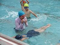 水泳学習3~6年 投稿日時 : 2017/06/20 学校管理者 6月20日 水泳学習島野浦小では3、4、5、6年合同で水泳学習を行っています。今日は、伏し浮き、けのび、バタ足の練習をした後、うでのかきを学習しました。水を手で押す感覚をつかむことが水泳上達の近道です。その後、面かぶりクロールの学習をしました。面かぶりクロールも頭を上げないことが大切なことを学習していました。 Tweet
