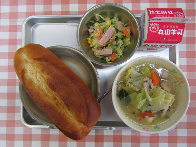 今日は、マヨネーズパン、牛乳、ポトフ、胡麻ドレッシングサラダです。