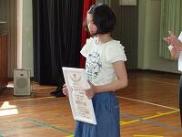 1学期終業式 投稿日時 : 2017/07/21 学校管理者 7月21日(金) 1学期終業式今日は1学期の終業式を行いました。校長先生から1学期頑張ったことをほめていただき、夏休みを元気に過ごすようお話がありました。その後、1学期頑張ったことの作文発表があり、多読賞の表彰、県スポーツ少年団空手の大会の表彰を行いました。また、学習、保健、生活担当の先生から、夏休みに気を付けることについてお話を聞きました。長い夏休みが始まります。健康に気を付けて、元気に過ごしましょう。