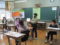 2月18日(木)は、島浦保育所年長児を招いての体験入学でした。4月からの小学校生活に向け、慣れるために設定されています。今年度は、3人の年長児さんが、3校時からそうじの時間まで、1年生と一緒に活動しました。始めに自己紹介をしました。まず、1年生がお手本を見せた後、年長児さんも行いました。とてもしっかり発表できました。その後は、学校内を探検しました。1年生も年長児さんのお世話を一生懸命しており、1年間の成長を感じました。