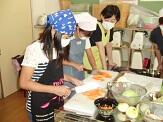 親子料理教室 投稿日時 : 2016/07/26 学校管理者 7月26日(火)に親子料理教室を行いました。 今回は、ナンカレー、りっちゃんサラダ、カルピスラッシーを作りました。 子供達は、お母さん方に教えてもらいながら、包丁を使って野菜を切ったり、フライパンで炒めたりして料理を楽しんでいました。 最後にみんなで作った料理を食べました。とてもおいしくできあがり、大満足の子供達でした。