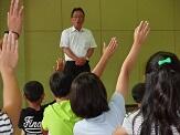 運動会結団式 投稿日時 : 2016/08/01 学校管理者 8月1日(月)に運動会の結団式を行いました。 まず、運動会のスローガン「島魂燃焼 ~つかむ勝利 浴びせる感動の光~」が発表されました。 その後、各団の団長、副団長のあいさつがありました。小学校の団長・副団長はA団が阿部晏志くん、小野綺音さん。B団が長友光士朗君、佐藤綺海さんです。 そして、団の色決定を行いました。A団が白に、B団が赤になりました。各団とも大きな声を出して応援練習を行い、心を一つにしていました。