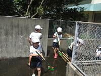 プール清掃 投稿日時 : 2017/06/05 学校管理者 6月3日(土) プール清掃を全校で行いました。上学年はプールの中を、下学年はプールの外回りを掃除しました。たわしでこすって水を流したり、ほうきではわいてごみを集めたりとみんな一生懸命作業を行ってくれました。ぴかぴかになったプールの中で、記念撮影をしました。