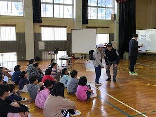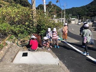 今回は、不審者が現れてその後に実際に避難する訓練ではなく、島浦駐在所のおまわりさんをお招きして、不審者と遭遇したときの対応についての考えるという講義・演習の形で行いました。シミュレーション体験をし、対応についてみんなで考えるという当事者意識を大切にした活動を取り入れたものでした。「いひちにし」の言葉を覚えることができました。