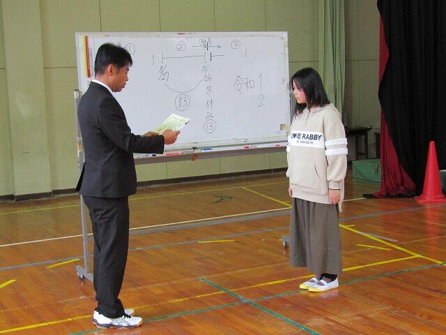 最後に、生徒指導担当の先生から、「ヒミコムシ」(火、水、交通事故)に気を付けよう!を合い言葉にした冬休みの過ごし方についてのお話がありました。