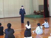 訓練後は、島浦駐在所の佐伯様より児童に向けてお話をしていただきました。また、職員向けにも対応の在り方、訓練の仕方についてご指導をいただきました。
