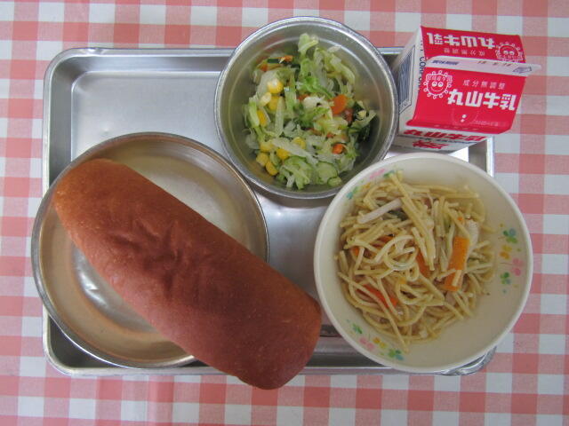 今日は、減量コッペパン、牛乳、ちゃんぽん、野菜の中華和えです。