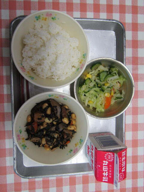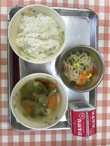 9月1日 投稿日時 : 2017/09/01 学校管理者 今日は、ごはん、牛乳、大豆のいそ煮、コーンサラダです。今日から九月です。子どもたちは、毎日給食を残さずもりもり食べています!これから、運動会の練習も始まります。まだまだ暑い日が続くので、しっかり食べて暑さに負けないように頑張ってほしいです!
