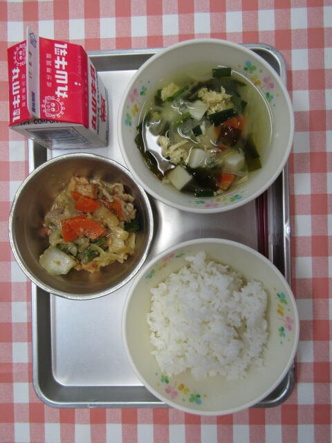 9月4日 投稿日時 : 2017/09/04 学校管理者 今日は、ごはん、牛乳、みそいため、にら玉汁です。にら玉汁のにらは,昔は薬として使われていたそうです。消化を助け腸の調子を整えたり,体を温めたりする働きがあるので,スタミナがつく食材として利用されています。
